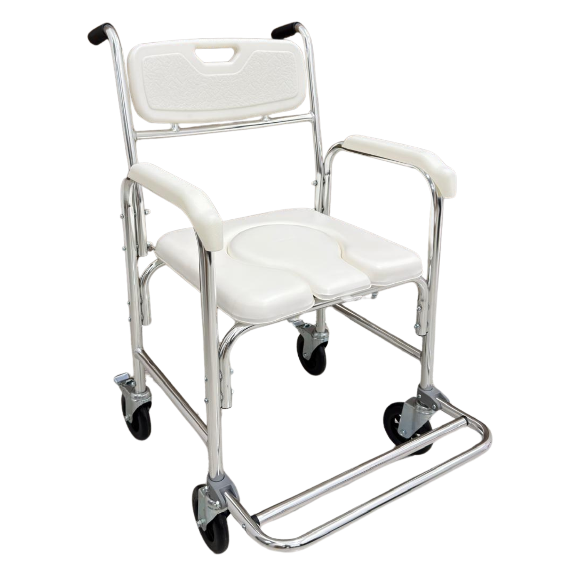 Sedia WC Doccia con Ruote Comoda - Seduta Anatomica in Alluminio, Imbottita, Pieghevole