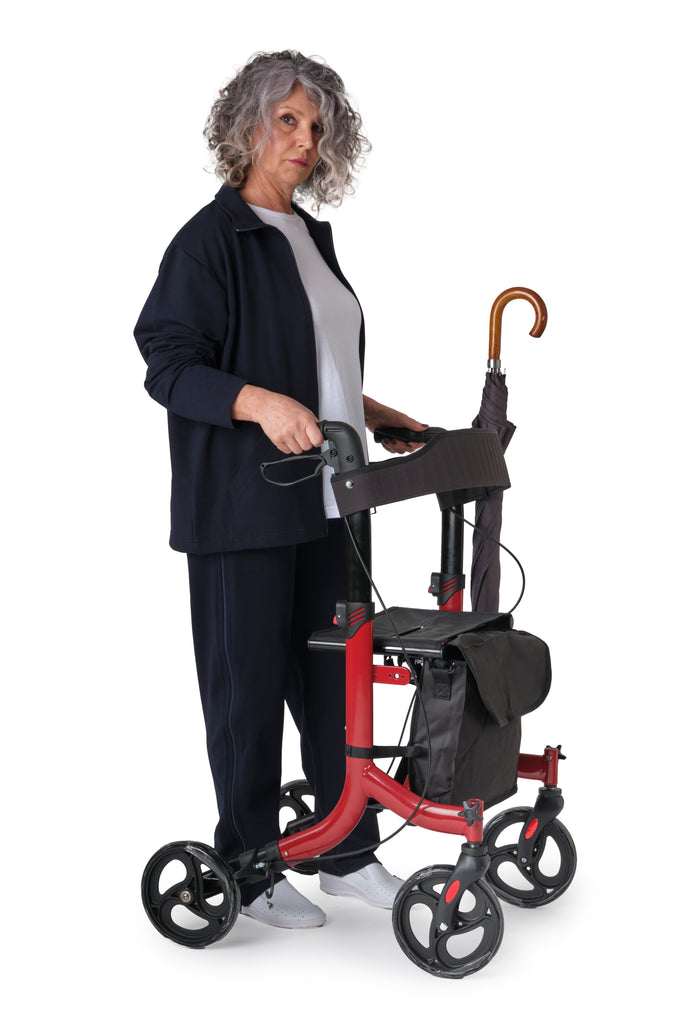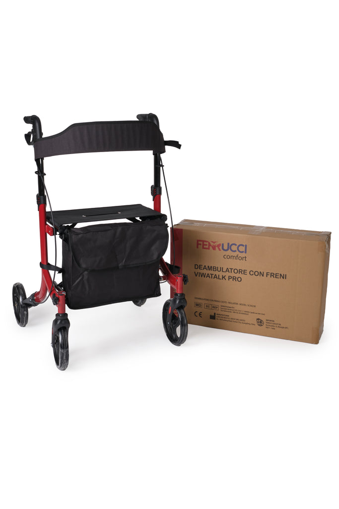 Klappbarer Gehwagen für ältere Menschen und kompakt in Aluminium für Senioren und Menschen mit Gehbehinderung. Ideal für den Transport überall hin, auch mit dem Auto, dank seines Gewichts von nur 8 Kg. Ausgestattet mit Bremsen, Sitz und praktischem Staufach für den täglichen Einsatz den ganzen Tag über. Mit seitlicher Schirmhalterung.