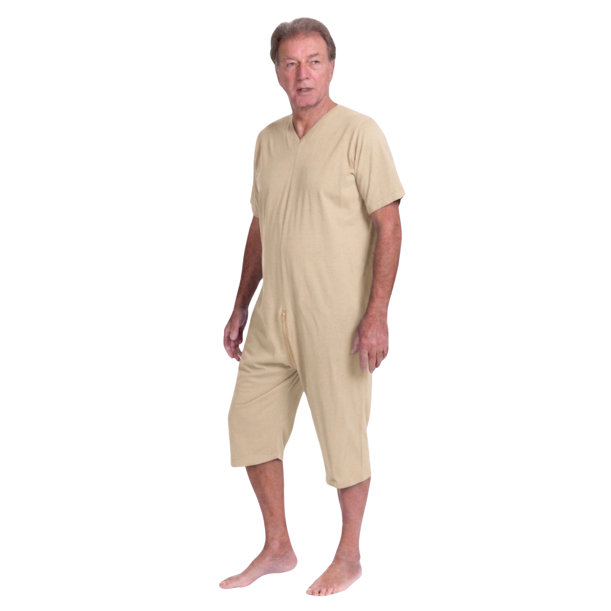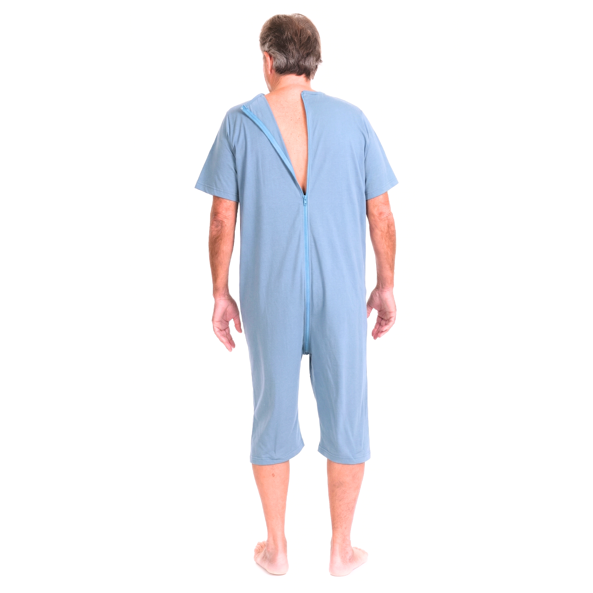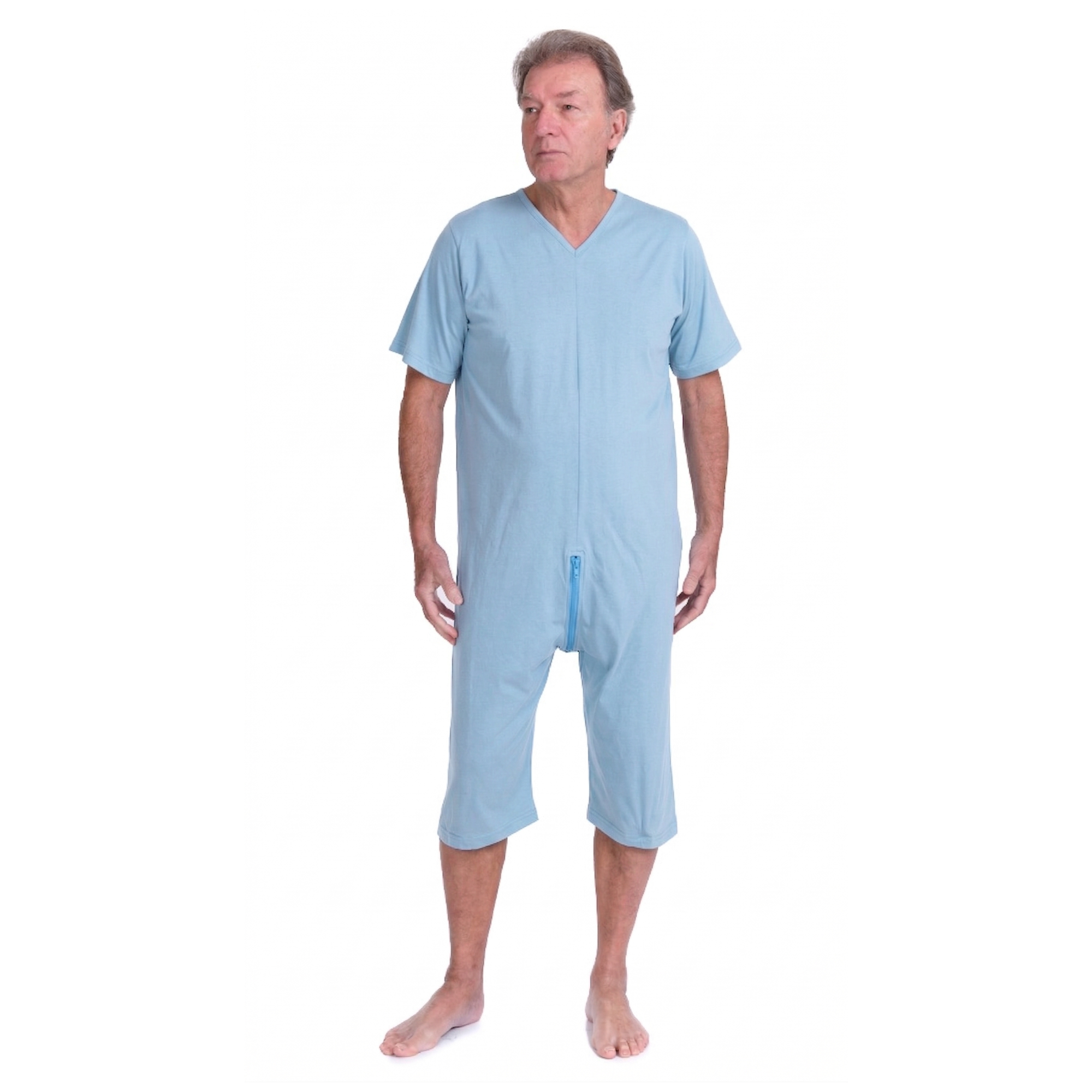 Pigiama Sanitario " Salute " con maniche corte e pantalone corto , per soggetti che soffrono di incontinenza e/o insofferenza agli indumenti a causa di patologie psichiche come Alzheimer, Demenza Senile o altre.