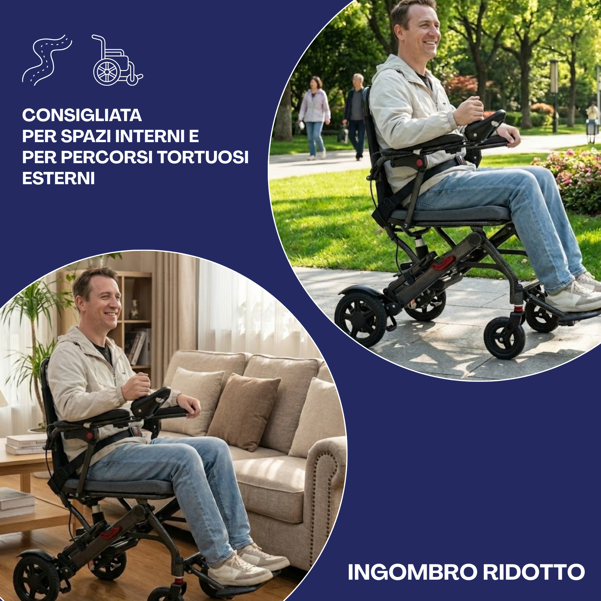 Sedia a Rotelle Elettrica Pieghevole Leggera Ingombro Ridotto - Batteria a litio, Carrozzina Automatica da Viaggio