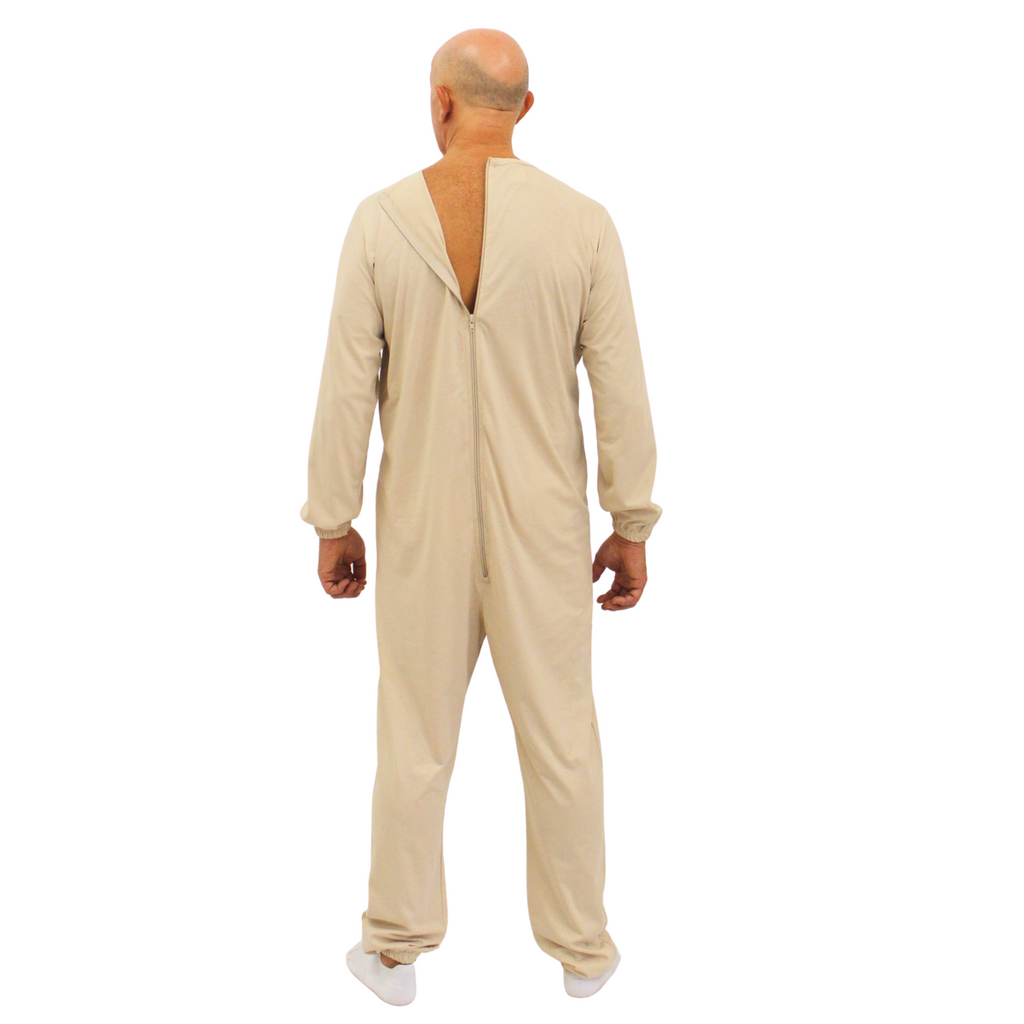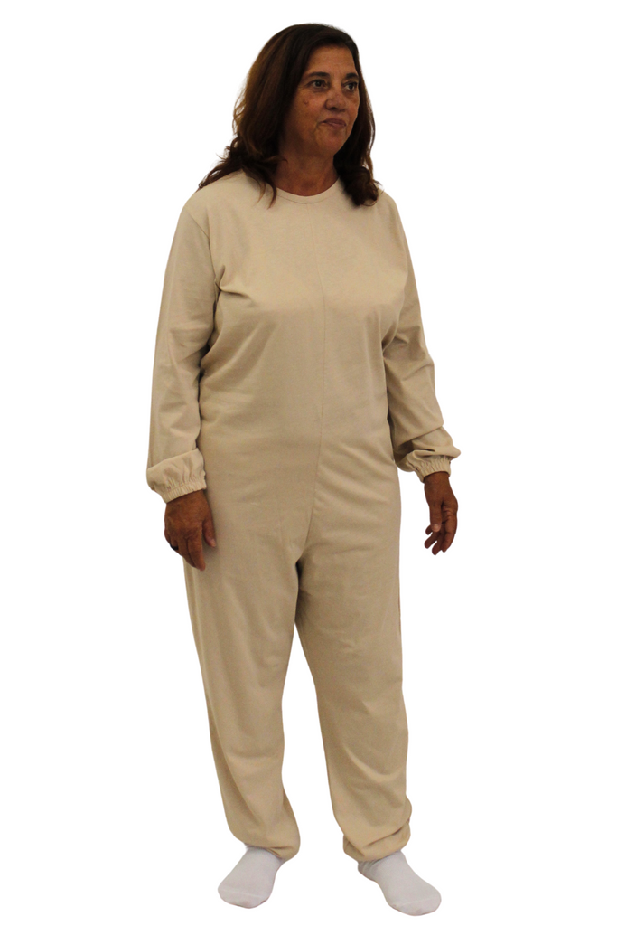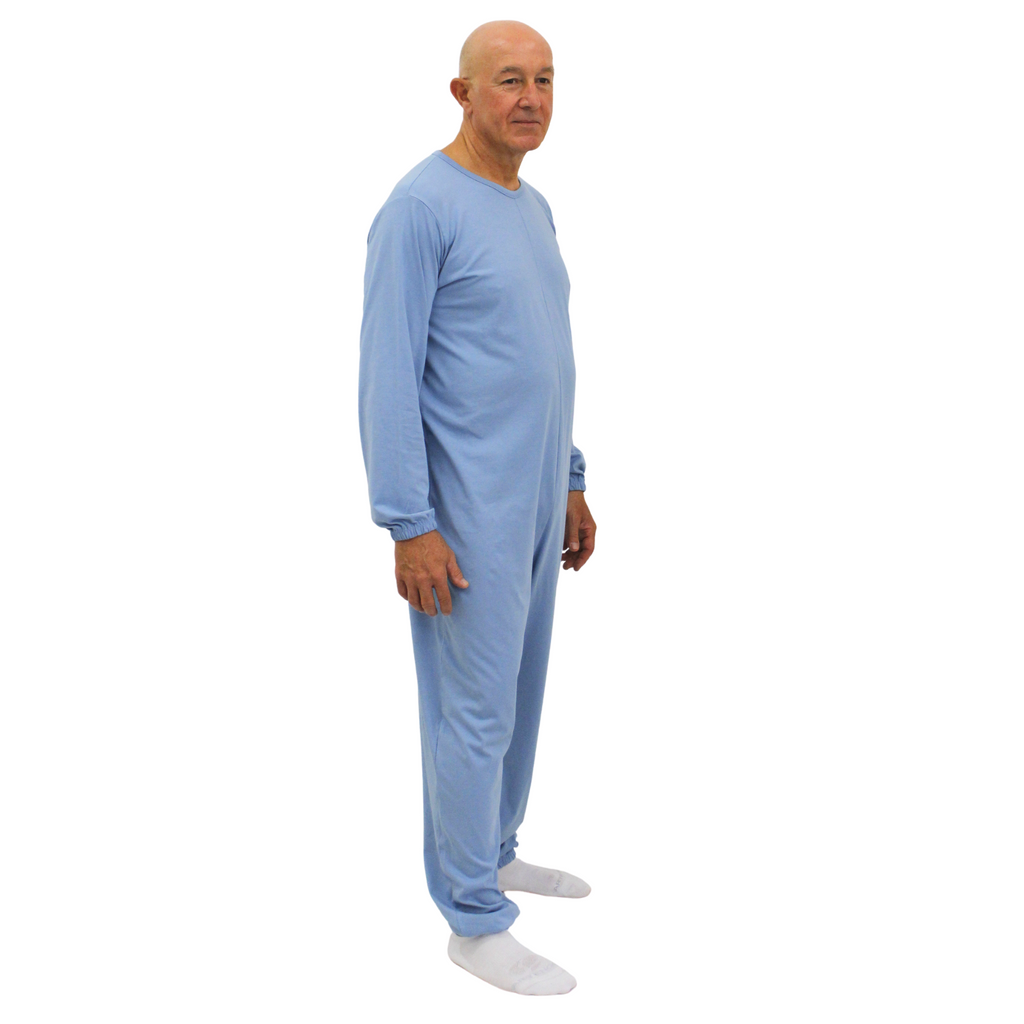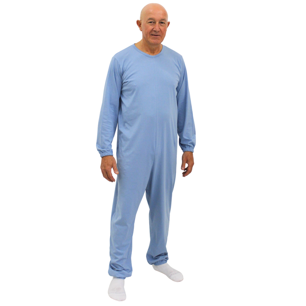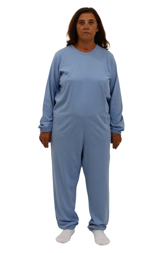 Pigiama sanitario consigliato a chi ha problemi di incontinenza e/o insofferenza agli indumenti, causa Alzheimer, demenza senile o disabilità psichica.